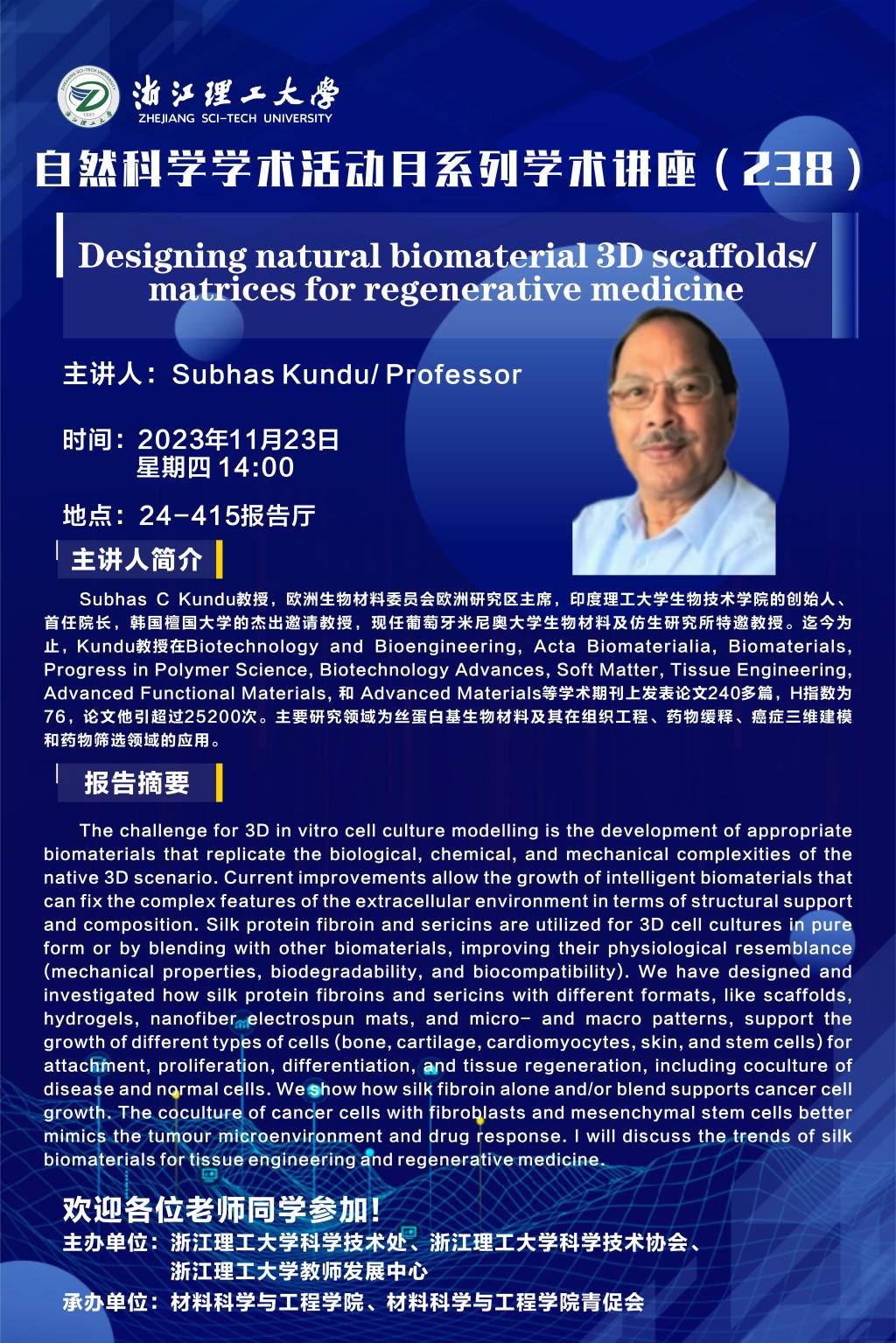 学术讲座 当前位置: 免费做爱影片 > 学术讲座 > 正文 学术讲座【69】:Designing natural biomaterial 3D scaffolds/matrices for regenerative medicine 作者:时间:2023-11-22浏览次数: